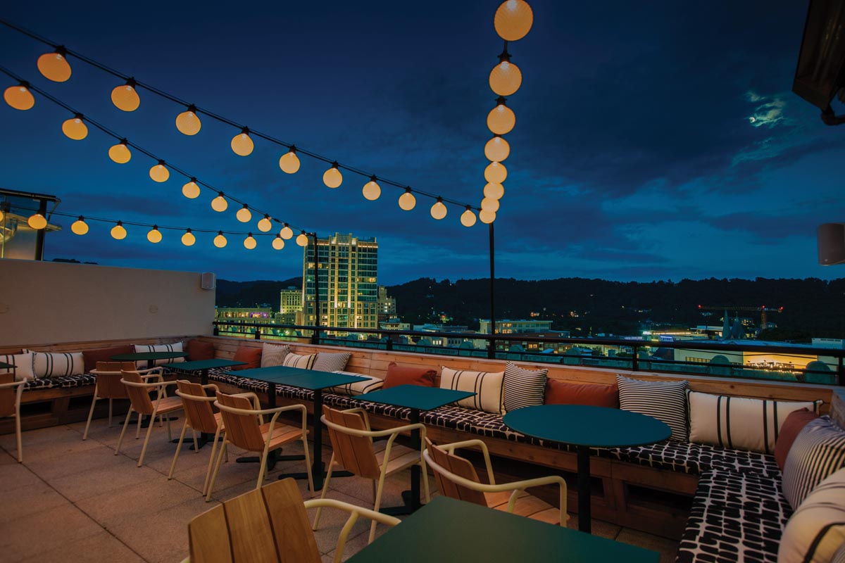 Adjacent to the lobby is Luminosa, an Italian-inspired eatery that brings a hyperlocal lens to Appalachian cuisine by using ingredients and produce from nearby farms and purveyors to shape and curate an ever-evolving, seasonally driven menu. The focal point and soul of Luminosa’s kitchen is a wood-burning oven and grill that adds an unparalleled smoky flavor profile to handmade pizzas, whole roasted fish and locally sourced proteins.