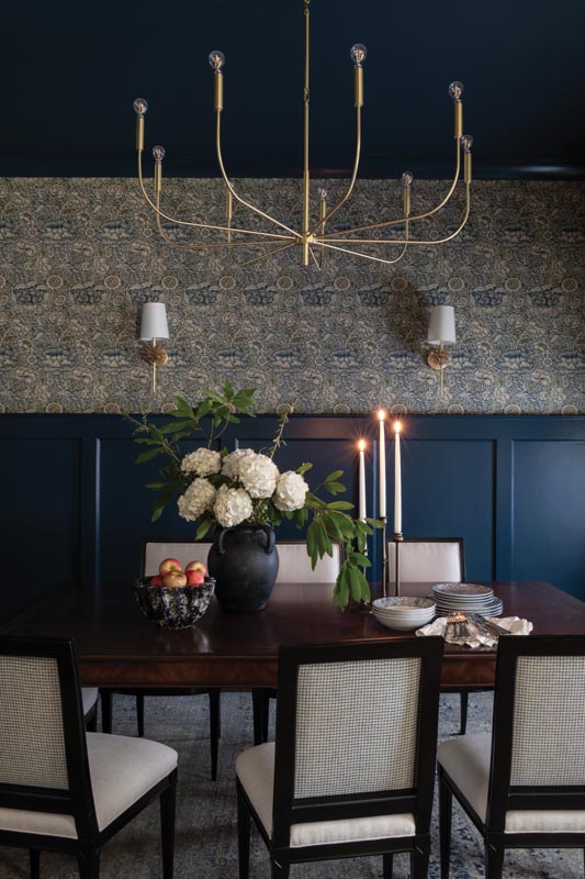 “One of the things I loved about this project was blending traditional elements with modern touches,” Fisher says. “There’s a great mix of classic and edgy throughout the home — each room feels unique, but there’s an underlying cohesion that ties everything together. In the open spaces or the intimate corners, I made sure each area reflected the client’s vision while maintaining a sense of flow.”