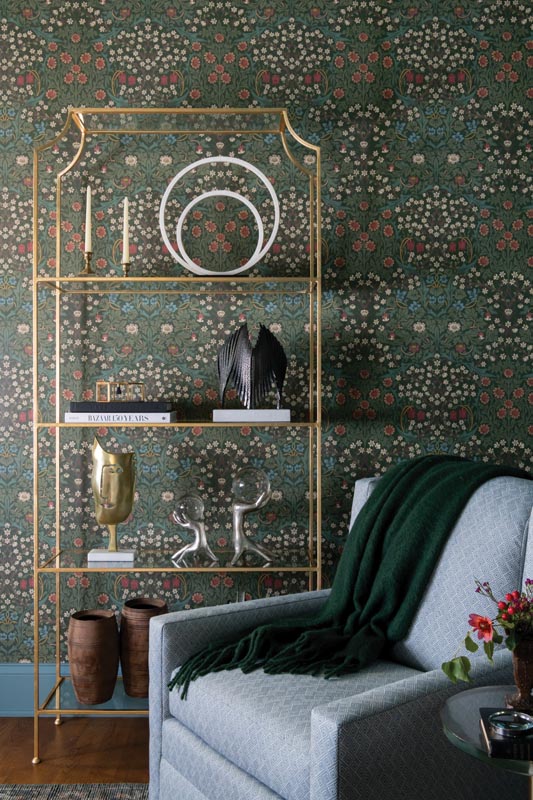 Fisher anchored the design around a variety of stunning William Morris wallpapers, which set the stage for the entire project. Their intricate, timeless prints and whimsical patterns gave each room its own personality while tying everything together. “She has a ‘more is more’ style, and I would lovingly tease her that she would’ve wallpapered the doorknobs if she could,” says Fisher.