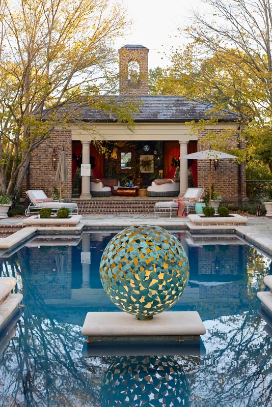 And by situating a sculpture directly on water, such as Mantle II placed within the pool in the showhouse, Harber used stillness and reflection to amplify its presence, allowing the water to become an essential part of the composition.