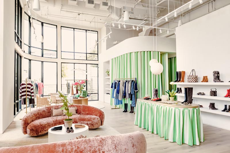 Loeffler Randall, the New York–based luxury women’s lifestyle brand, has opened a 2,300-square-foot store in 12 South, the boutique brand’s largest to date, filled with footwear, ready-to-wear, and accessories, specially curated for the Nashville audience. In collaboration with Loeffler Randall, Co-Founder & Chief Creative Officer Jessie Randall and her team worked with Poonam Khanna, founder and principal of UNIONWORKS, to design the new store. Khanna, who previously collaborated with Loeffler Randall on their New York and Charleston locations, infused the brand’s signature aesthetic into the space. Highlights include curved curtain walls meant to mimic the brand’s iconic pleat, as well as Zellige tiles and Murano light fixtures — nods to Jessie’s travels.