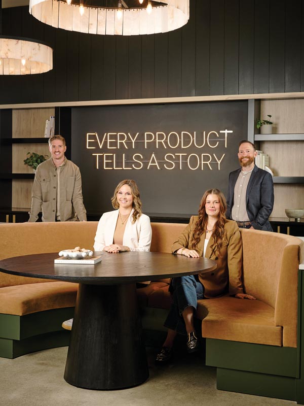 “The Huskey team engaged us to reimagine their showroom experience into something more elevated and tailored,” says Abbey Stewart, interior designer and material resource manager for Powell. “Their vision was to create a high-end environment where guests would feel welcomed and cared for, surrounded by thoughtful details and amenities.”