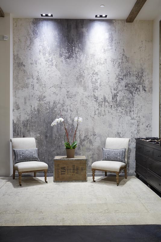 Each project is different, but Wright’s process of working with designers always involves creating samples based on the design and materials, then adding and adjusting as needed. With more than 20 years of experience, many times she has often educated designers on what exactly is available to them to incorporate into their work, many of them entering the field long after the last faux-bubble crash.