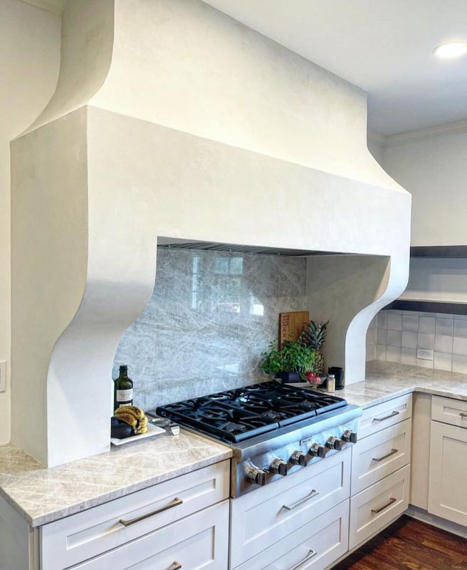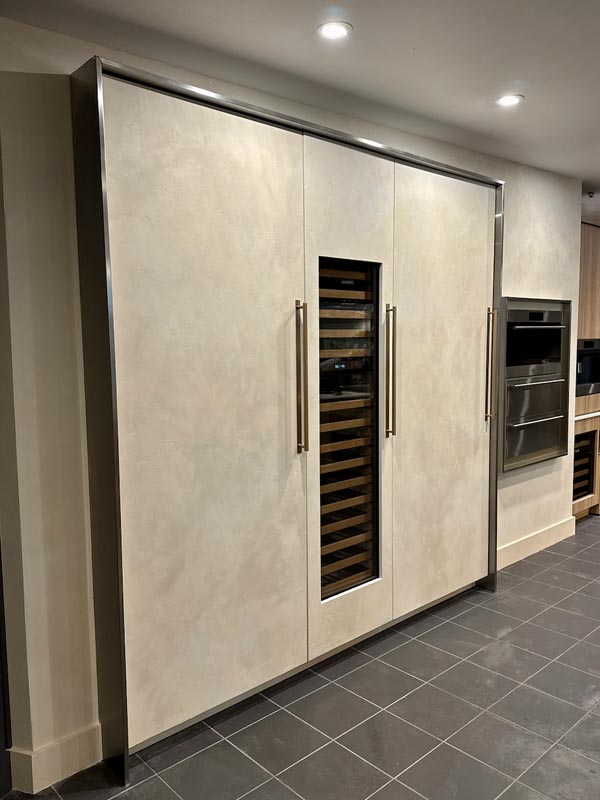 Lately, Wright has been leaning into plaster applications, which are having a true design moment. She recently completed a plaster application directly on the fronts of Sub-Zero appliances for Tisdel Distributing in the Cenwood showroom.
