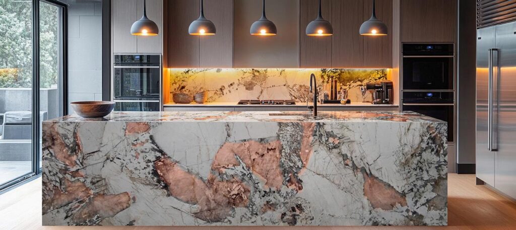 Equally important is the quality of the material itself. The team sources globally, prioritizing rare, high-grade natural stone that feels distinctive and highly curated.