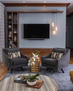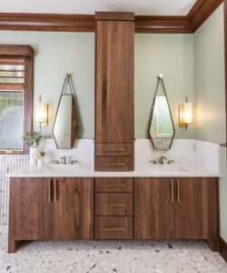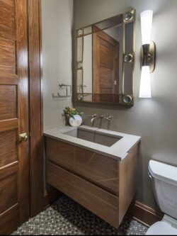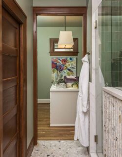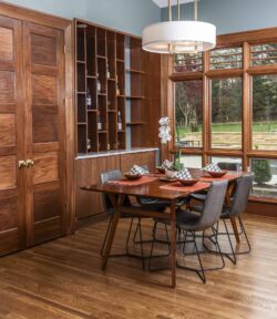 “The wood really works for the house,” Williams says. “In one of our first meetings, Anne and Scott brought a Frank Lloyd Wright book. We studied that architecture in design school and absolutely love it. So I think the trust and collaboration of them adding their own colorful and functional style that still honored the house and the woodwork, keeping all that intact is what meant the most to the house and to the client.”