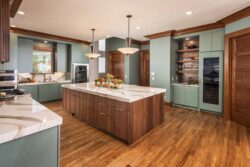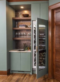 Those answers helped guide the design in interesting ways, like one of the closets being turned into a wine bar with extra prep space, or an extra prep sink in the kitchen that makes it easier for two adults to cook together for their family of five. Another is one of Hunter’s favorite elements: the “appliance garage” Williams created in the pantry that gives her a place to stash her toaster, mixer and bagel slicer while keeping counters — and sightlines — clear.
